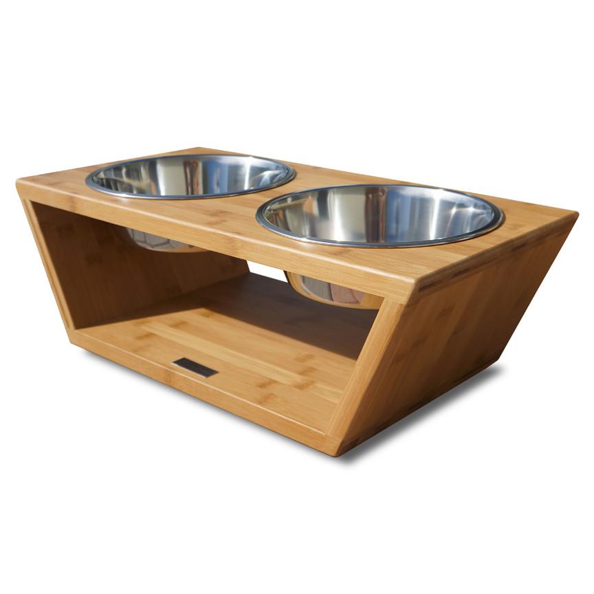 Our Angled Bamboo Diner is much more than a pet feeder. It’s your pet’s very own dining table. The elevated Diner is created with rich, renewable bamboo, one of the most luxurious water resistant finishes which will not stain and 2 stainless steel bowls are the highest quality available. Its’ four nonskid rubber feet raise it up off the ground to not damage your floor. The finishing touches include our highly polished stainless steel label representing the unique Pet C Cola Brand!