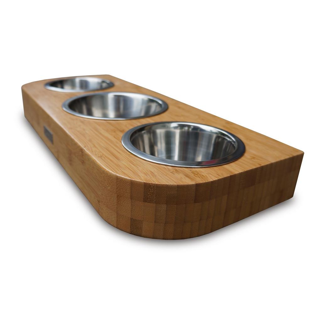 The Ash 2 Bowl Diner is created with solid Ash Wood, water resistant finish which will not stain, 2 high quality stainless steel bowls and topped off with a polished stainless steel label representing the Pet C Cola Brand. This is the perfect diner for a home with multiple pets, just a finicky Adult Dog or Puppies or Cats and Kittens.